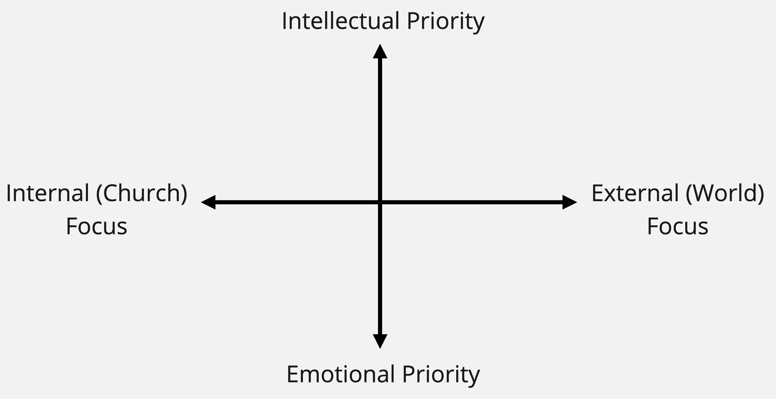 Most pastors naturally lead from their church’s strengths, often overlooking other essential aspects of ministry. These tendencies are shaped by two core dynamics—intellect and emotion, and an internal (church) or external (world) focus. Together, these form four distinct Church Profiles: Doctrinal, Experiential, Diaconal, and Missional.